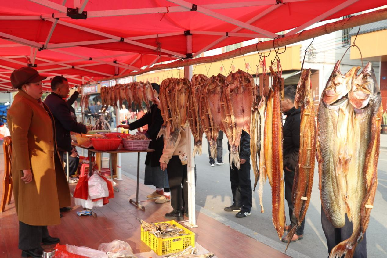 2月10日下午,广东英德浈阳峡第九届北江文化鱼干美食节在连江口镇迎春花市开启。这场融合了美食、文化与爱心的盛会,为新春佳节增添了浓郁的喜庆氛围,吸引了众多游客前来打卡体验,感受该镇推进“百县千镇万村高质量发展工程”(以下简称为“百千万工程”)的丰盛硕果。